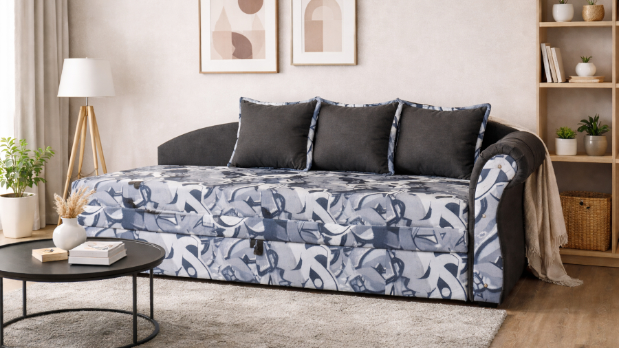 • Kanapa posiada funkcje spania oraz duży pojemnik na pościel.